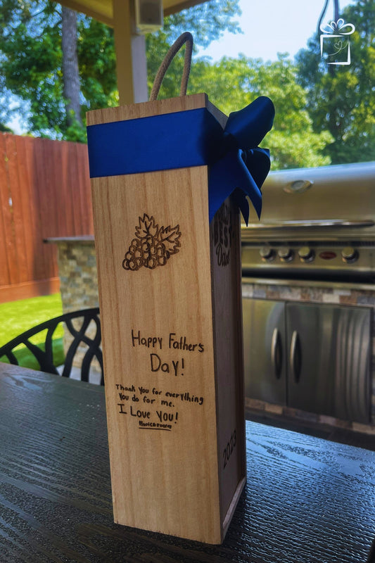 Elevate your gift with a beautifully engraved wooden wine box! Perfect for birthdays, weddings, anniversaries, or any special celebration. Personalize up to three sides for a truly unique touch!