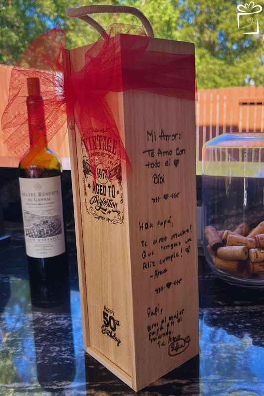 Elevate your gift with a beautifully engraved wooden wine box! Perfect for birthdays, weddings, anniversaries, or any special celebration. Personalize up to three sides for a truly unique touch!